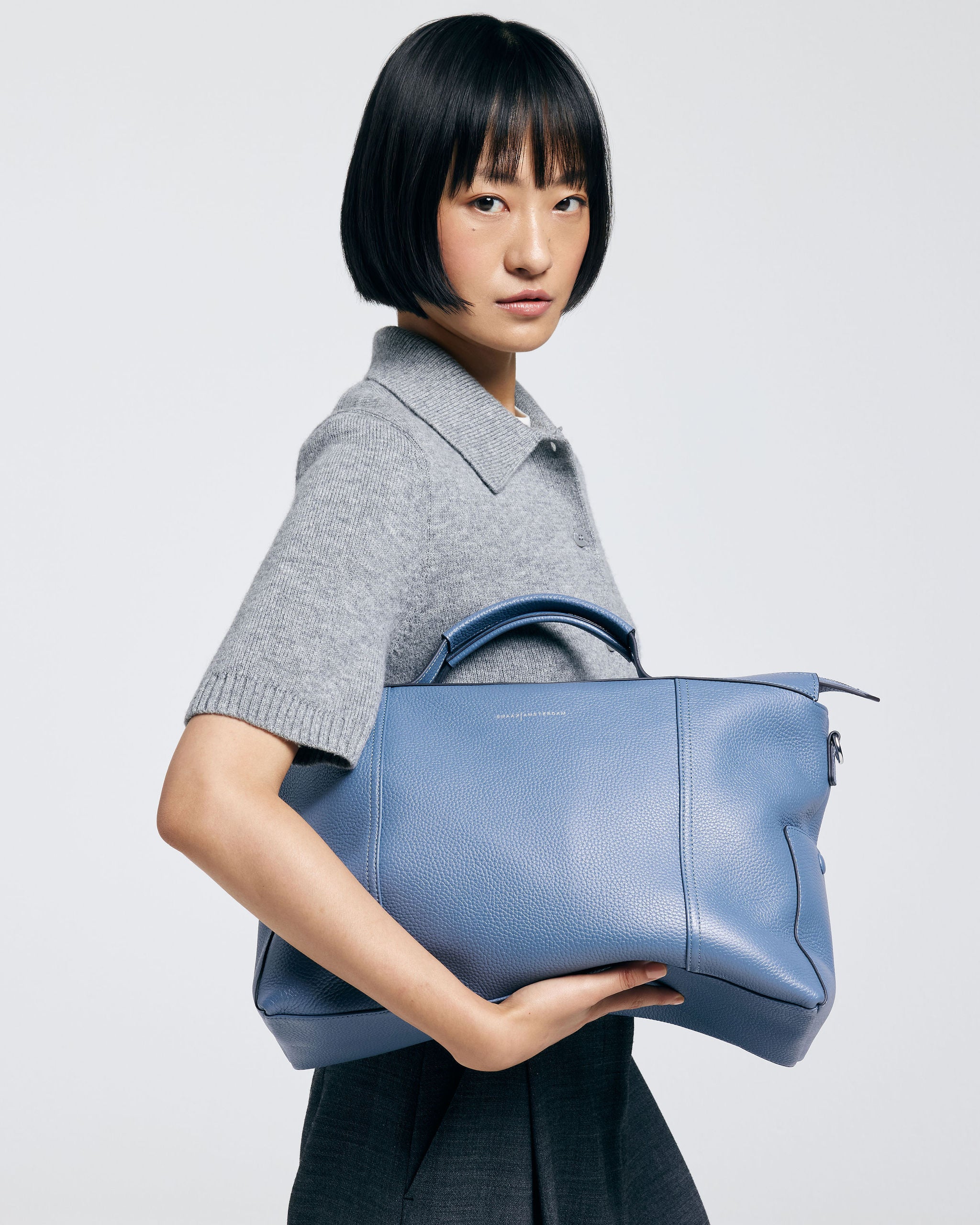 Die Tasche ist aus weichem, geschmeidigem Rindsleder gefertigt und wird oben mit einem Reißverschluss geschlossen.