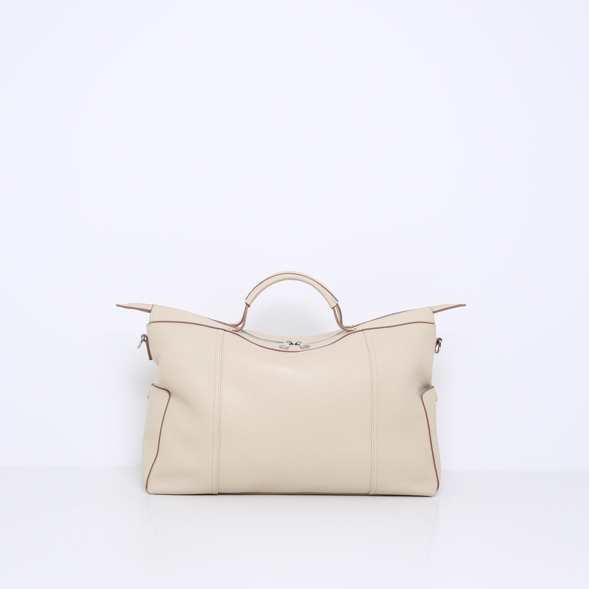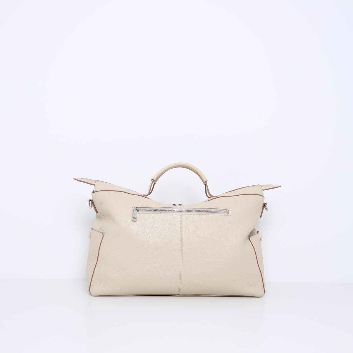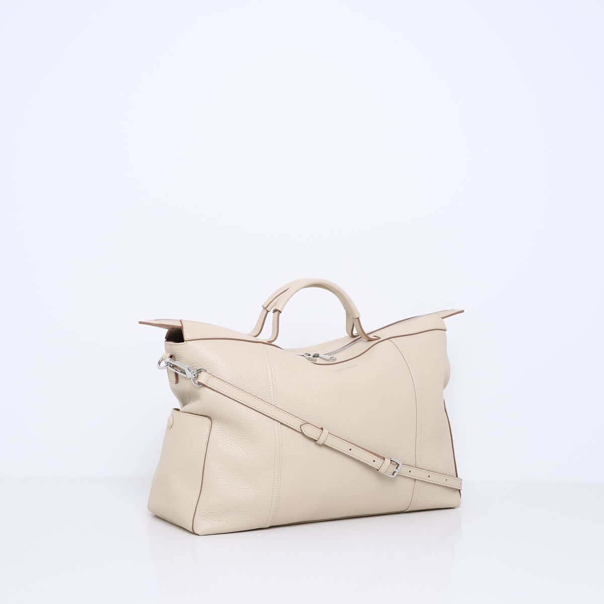 Die Tasche ist aus weichem, geschmeidigem Rindsleder gefertigt und wird oben mit einem Reißverschluss geschlossen.