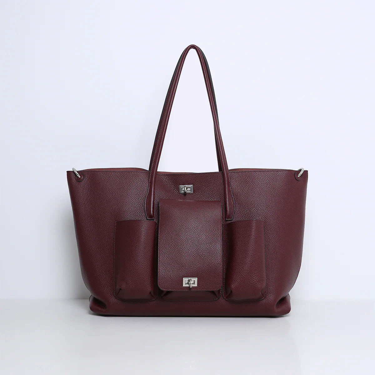 Das Besondere an der JULIANNE ist ihre clevere Aufteilung: außen befinden sich zwei geräumige Taschen und eine verschließbare Vordertasche mit Drehverschluss, ideal, um schnell mal ein Feuchttuch zu greifen. Im Inneren befindet sich eine abnehmbare Tasche, praktisch für kleine Gegenstände wie Schnuller, Cremes oder Ihre eigenen Utensilien.