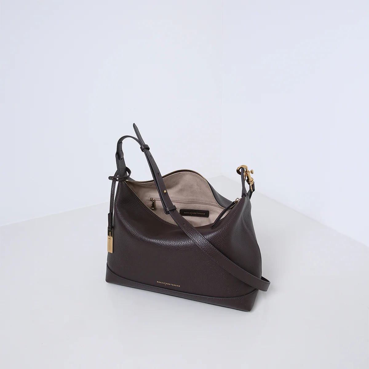 Die Tasche ist ideal für den täglichen Gebrauch, da sie genügend Platz für alle wichtigen Dinge bietet, ohne dabei sperrig oder klobig zu wirken. Der verstellbare Trageriemen ermöglicht es Ihnen, die Tasche in der für Sie optimalen Länge zu tragen, ganz gleich, ob Sie auf dem Weg zur Arbeit sind, den Tag ausklingen lassen oder Besorgungen machen. Sie verfügt über mehrere Innentaschen und ist mit Veloursleder (Viskose) gefüttert.