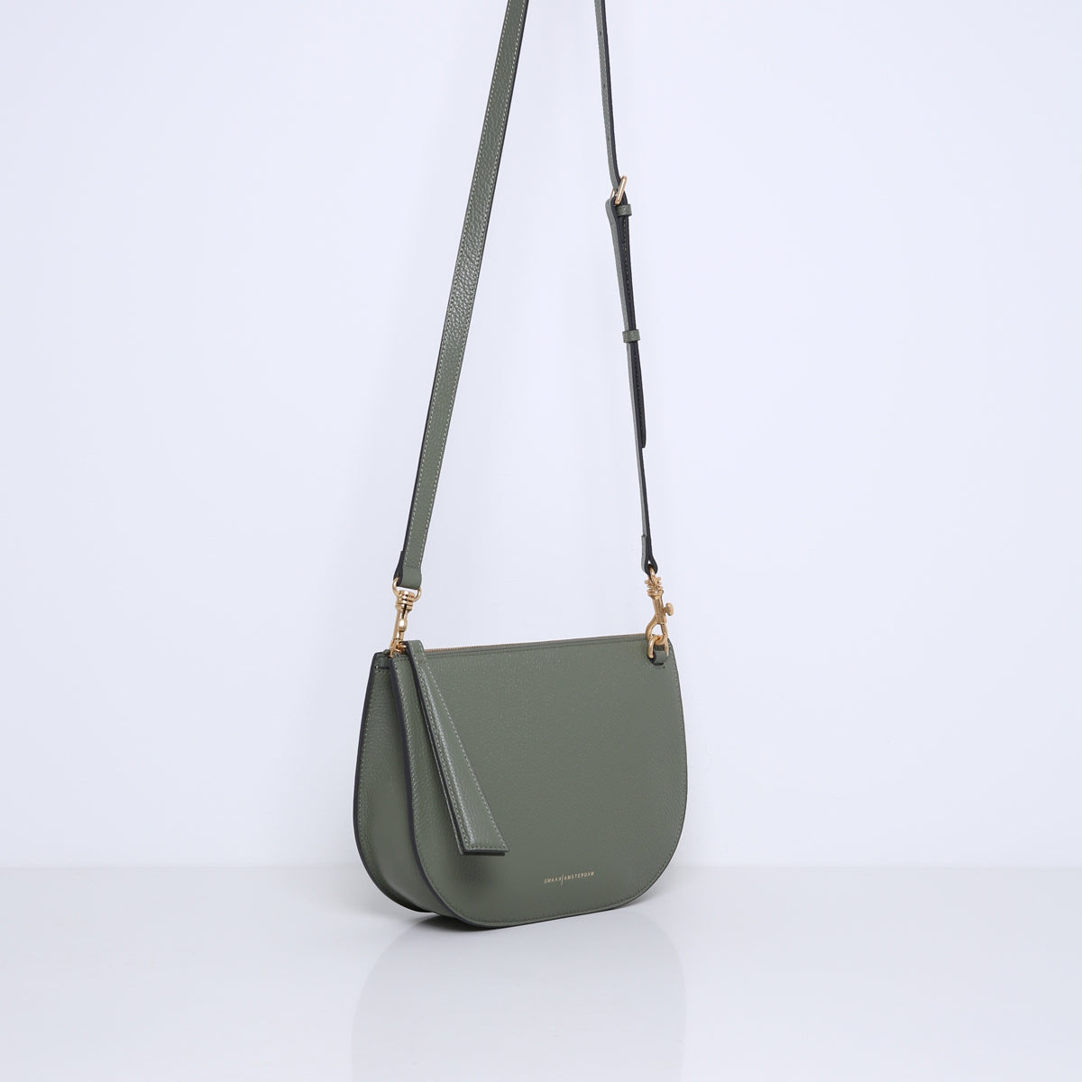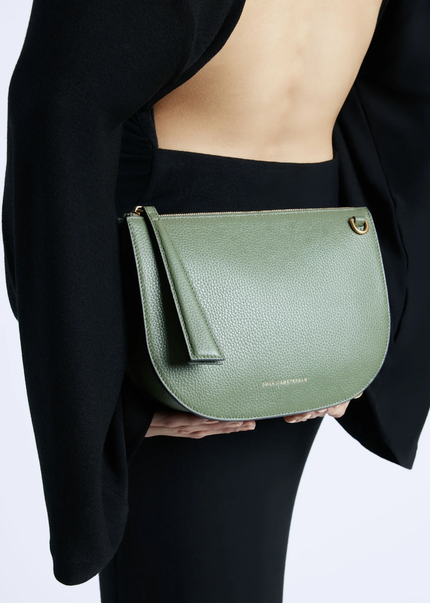 Die SILKE Satteltasche ist aufgrund ihrer abweichenden halbrunden Form ein einzigartiges Modell. Die Tasche ist etwas breiter und damit funktioneller als die traditionelle Half Moon Bag. Durch die schlanke Form ist diese Tasche leicht zu tragen und passt zu ELKEm Outfit, ohne 'herauszustechen'. Der Ledergriff ist auf 130 cm verstellbar.