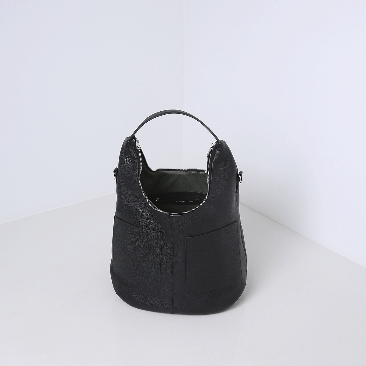 Eine geschmeidige Oboentasche mit einer geräumigen, weichen Silhouette, die sich schön um den Körper schmiegt. Die runde Form und die subtilen Linien verleihen der Tasche einen entspannten, aber eleganten Look. Dank des stabilen Bodens steht sie gut, während das Leder Ihren Bewegungen natürlich folgt.
