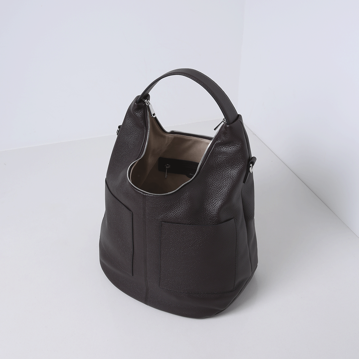Sie können sie bequem am festen Schulterriemen tragen, und dank des langen, verstellbaren Riemens auch als Umhängetasche. Hergestellt aus weichem, hochwertigem Leder mit einer feinen Struktur und veredelt mit minimalistischen Details und robusten Beschlägen. Ein zeitloses Modell für jeden Tag, mit viel Platz, ohne schwer zu wirken.
